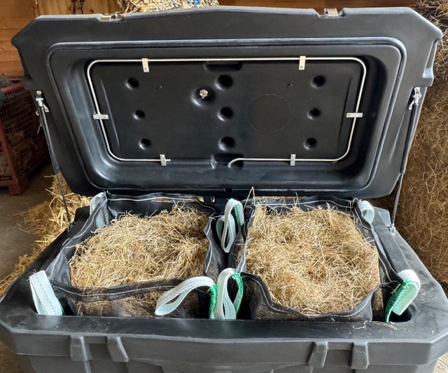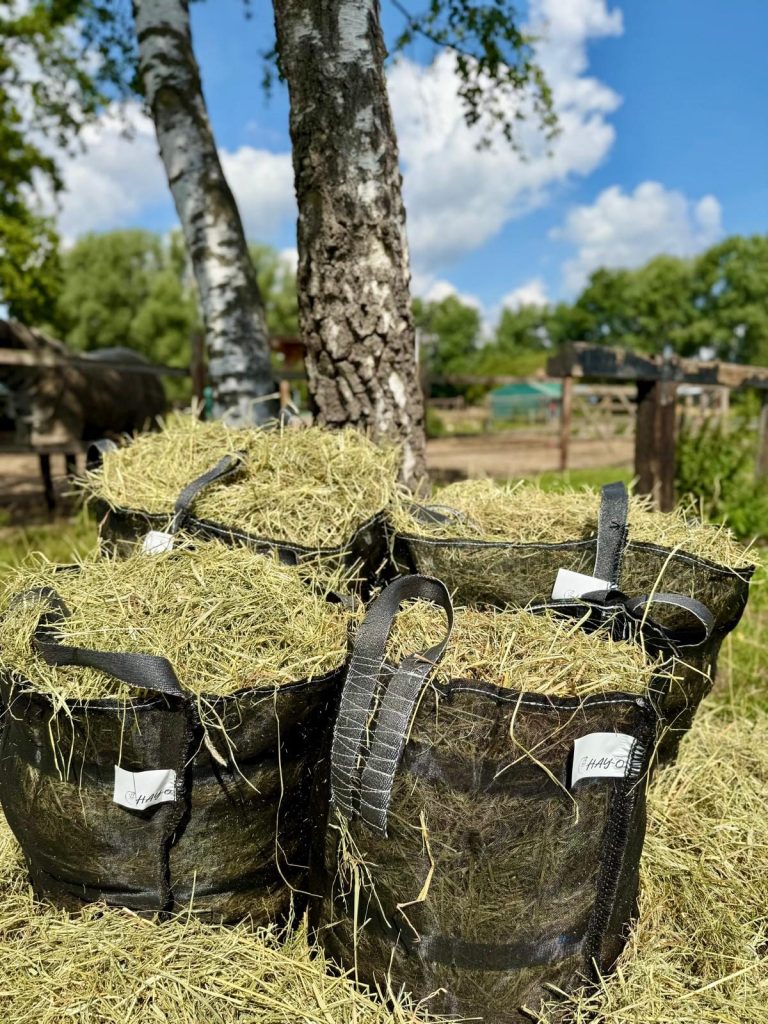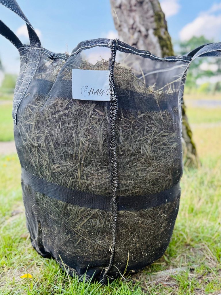 • Einfacheres Befüllen als mittels Heunetzen. Die HAY-Os sind zwar flexibel, dabei aber auch so stabil, dass sie gut  offen stehen, sobald sie ca zu einem Drittel gefüllt sind.
